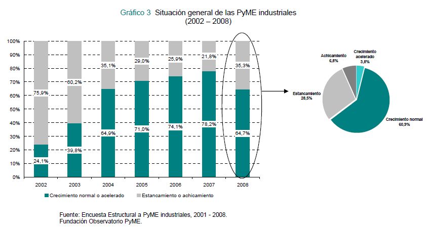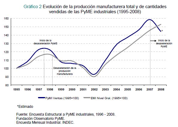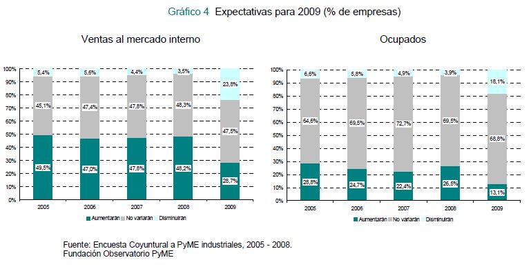 Durante el cuarto trimestre de 2008 a la crisis del mercado interno, al cual dirigen mayoritariamente sus ventas las PyME industriales argentinas, se sumó la crisis del mercado internacional con fuerte impacto negativo entre las PyME industriales exportadoras.