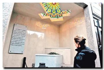Desde ayer, Alfonsín reposa en un espacio construido sobre mármol gris y beige, con una cruz sobre lo alto y un llamativo y luminoso vitraux por el cual entra una tenue luz para poder apreciar algo más el pequeño lugar donde se ubica el sarcófago.