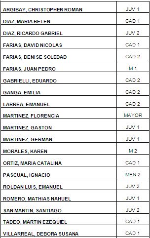 El equipo federado acompañado por su entrenador Marcelo «Yuri» Quaglia es el siguiente: