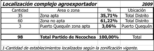 El desarrollo del proceso de ordenamiento del complejo agro exportador iniciado en el año 2007 busca cumplimentar los objetivos mencionados; fundamentalmente aquellos que orientan regular la principal actividad económica de la región sin vulnerar la calidad de vida urbana, principalmente de Quequén donde se localiza el 90% de los establecimientos.