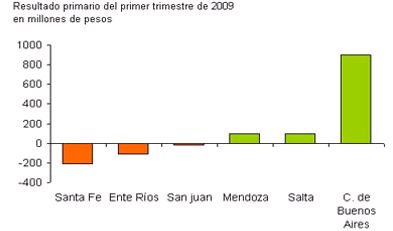 Los gastos de las provincias crecen significativamente por encima de sus ingresos. La suba en los recursos se encuentra entre el 10% y el 20% promedio, con una marcada desaceleración de los tributos propios. Las cuentas públicas de las administraciones provinciales muestran en el primer trimestre del año un crecimiento de los gastos totales mayor al alza de sus recursos, lo cual agrava la salud de sus finanzas. Cabe recordar que en 2008 se presentó un déficit financiero consolidado de las 24 jurisdicciones por segundo año consecutivo luego de la salida de la crisis. Uno de los fenómenos más notorios es la caída en el crecimiento de los recursos con respecto a 2008. En lo que respecta a los gastos, es considerable el crecimiento de la partida de gastos de capital, más específicamente la Inversión Real Directa. Este aumento se debe en gran medida a la mayor ejecución de obras previo a la contienda electoral.