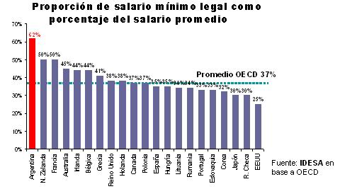 • En Argentina, el salario mínimo legal representa el 62% del salario promedio.