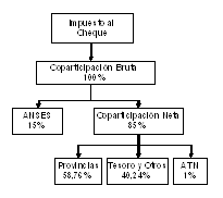 - Actualmente, el Impuesto a los Débitos y Créditos Bancarios (generalmente conocido como Impuesto al Cheque) se coparticipa parcialmente, sólo un 30% del total de su producido, mientras que el 70% restante se destina directamente al Tesoro Nacional.