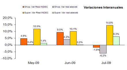 Para el mes de junio el INDEC reportó un crecimiento del 14.4% interanual en las ventas de supermercados, lo cual marco una gran diferencia con lo sucedido en las en los Shopings.