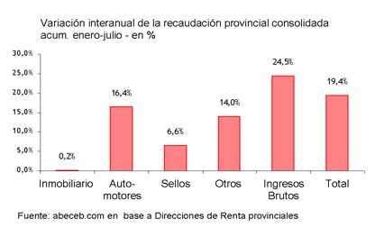 La recaudación consolidada provincial de los primeros siete meses aumentó un 19,4% interanual. El incremento estuvo explicado en mayor medida por los Ingresos Brutos y el impuesto a los Automotores.