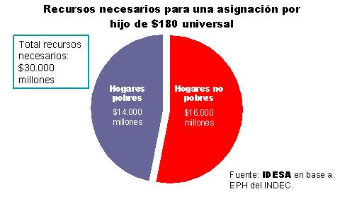 • Si todos los niños y jóvenes menores de 18 del país reciben la asignación familiar por hijo de $180 habría que erogar aproximadamente $30.000 millones por año.