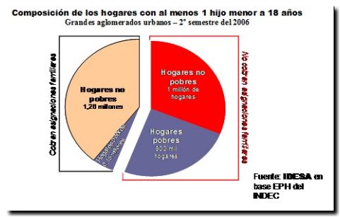 El decreto fija, de manera muy rudimentaria e imperfecta, los criterios que deberá seguir la ANSES para focalizar la transferencia en los hogares más humildes. Señala que la cobertura alcanzará a los menores de 18 que no tengan otra asignación familiar y que pertenezcan a grupos familiares de desocupados o que tengan un trabajo informal con remuneraciones inferiores al salario mínimo ($1.240). Por las manipulaciones en el INDEC no se cuenta con información actualizada, pero con datos del 2º semestre del 2006 se puede observar que: