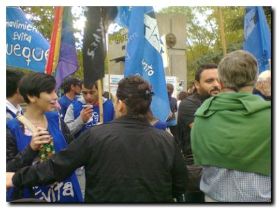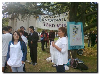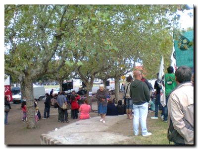 El acto comenzó con la entonación del Himno Nacional Argentino, interpretado por profesores y alumnos de la Escuela de Arte a Orillas del Quequén, y continuó con las alocuciones alusivas a la fecha, como así también se recordó a los militantes María Inés «Maine” Germino y Américo Díaz, recientemente fallecidos, asiduos concurrentes a este acto y comprometidos con la causa.