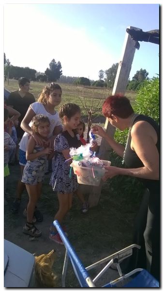 Susana, Marcela, Eliana y Maria hicieron huevos artesanales de chocolate y los repartieron esta tarde a todos los chicos y chicas del barrio.