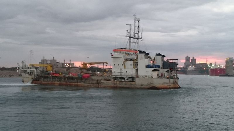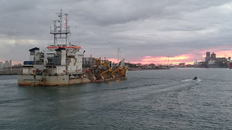 Desde el jueves la draga de succión por arrastre Américo Vespucci trabaja en Puerto Quequén. Se trata de la tercera campaña de succión por arrastre.